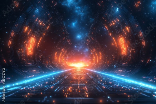 fiction, galaxy, end, line, neon, perspective, scheme, glowing, future, futuristic, speed, three-dimensional, club, laser, network, science, time, floor, room, transportation, tunnel, motion, corridor, wallpaper, rendering, interior, energy, night, shape, illustration, light, science fiction, technology, empty, space, modern, abstract, digital, orange, black, dark, blue, concept, design, texture, colours, bright, background