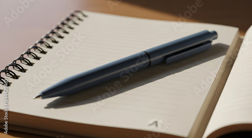 A blue ballpoint pen rests thoughtfully on a clean, lined spiral notebook, symbolizing focus, planning, and the quiet moments of daily reflection and intellectual pursuits.