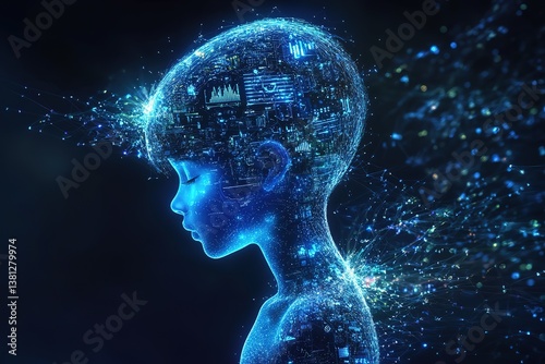blue, glowing, silhouette, human, figure, technically, element, intersection, humanity, digital, technology, network, datum, virtual, futuristic, cyber, concept, creativity, visualisation, efficiency, speed, storage, software, hardware, intelligence, development, research, progress, science, modern