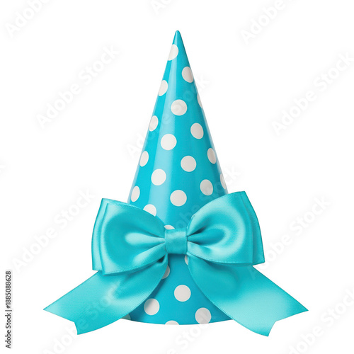 blue, party, hat, polka, dot, bow, ribbon, teal, celebration, birthday, festive, decorative, accessory, fun, colourful, whimsical, playful, cheerful, bright, shiny, satin, bow, hat, party, event, gift, wrapping, decoration, theme, children