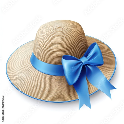 A blue ribbon sun hat, vibrant and cheerful, perfect for summer fashion, vector art, isolated on white background
