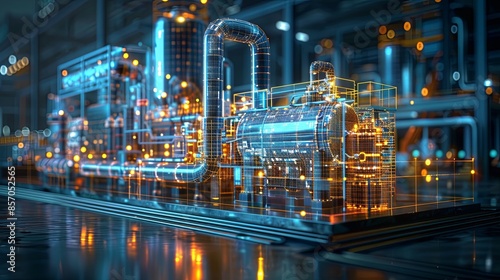a blueprint of a Smart factory,Soft glowing lines outline