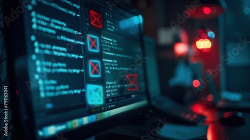 blurred, figure, computer, monitor, code, error, message, dark, room, red, light, hacker, technology, dangerous, invisible, digital, shadow, mask, identity, anonymous, programming, firewall, encryption, surveillance, intrusion, datum, thieving, hacker, virtual, threat, phishing, password, breach, spam, virus, spyware, scam, information, leak, mining, attack