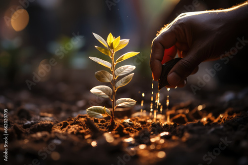 A Bodhi tree sapling being planted as a symbol of spiritual growth and the continuation of Buddhist teachings. Generative Ai.