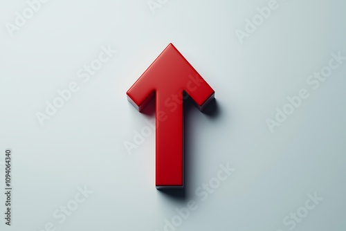 A bold, red 3D arrow pointing upward against a light background, symbolizing progress, direction, or increase.
