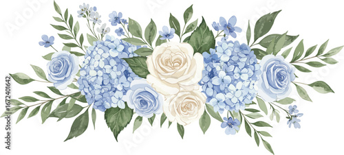 blue flower, white rose, green leaf, floral arrangement, bouquet, flower, leaf, plant, nature, floral, white background, hydrangea, rose, blossom, botanical, illustration, delicate, elegant, beautiful, colourful, floral pattern, garden, ornamental, spring, summer, fresh, vibrant, whimsical, romantic, feminine, decorative, floral pattern, leafy, stem