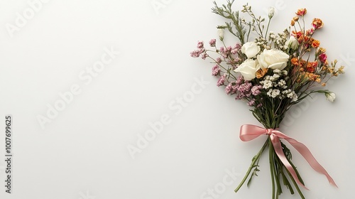 bouquet, flower, white, orange, pink, ribbon, background, floral, arrangement, stem, green, delicate, bloom, blossom, flower petals, soft, romantic, pretty, beautiful, nature, elegance, love, gift, celebration, sympathy, joy, happiness, simple, elegant, modern, minimal, aesthetic, design, photo