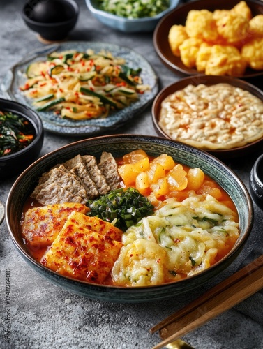 meal, food, dinner, vegetable, dish, cookery, delicious, lunch, eatery, plate, meat, asia, bowl, cooked, asian, epicure, traditional, rice, japan, healthy, fresh, eat, sauce, tasty, hot, kimchi, table, japanese, set, background, egg, spicey, chopstick, soup