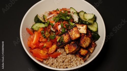 vegan, buddha, bowl, grilled, tofu, brown, rice, vegetarian, vibrant, healthy, meal, eos, food, v, profile, ar, salad, diet, dinner, job, id, lunch, vegetable, fresh, vegetarian, green, delicious, avocado, dish, eating, lettuce, organic, balanced, tasty, cucumber, detox, view, top, sesame, mix, background, raw, red, health, roasted, plate, tomatoes