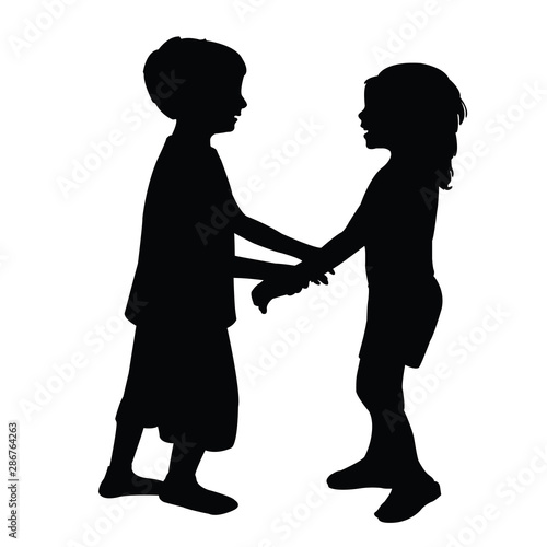 a boy and a girl speaking silhouette vector
