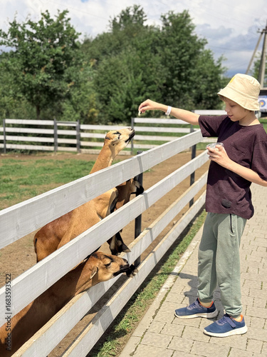 activity, adventure, agriculture, animal, boy, boy, care, cheerful, children, childhood, cute, domestic, family, farm, feeding, food, fun, goat, happiness, children, avocation, farm animal, nature, one person, outdoors, people, pet, petting zoo, playground, playing, duck pond, rural scene, sheep, summer, sunny, travel, vacation, zoo