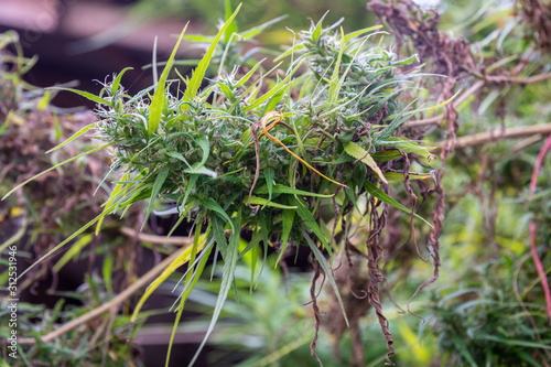 A branch of hemp bush close-up.