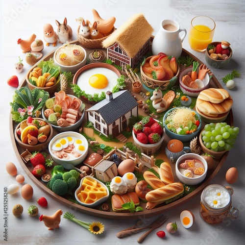A breakfast spread that looks like a tiny farm scene