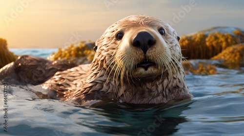 A breathtaking shot of a Sea Otter his natural habitat, showcasing his majestic beauty and strength.