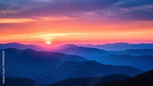 A breathtaking sky at dawn, with the first light of the sun peeking over the mountains, illuminating the horizon.