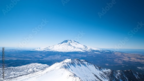 A breathtaking view of a snowy mountain peak surrounded by clear blue skies