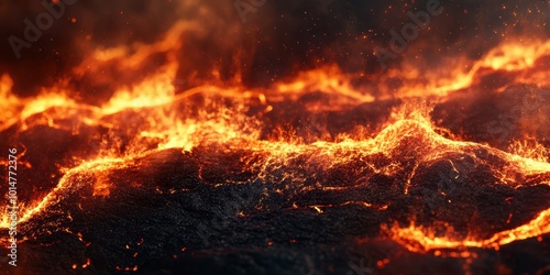 A breathtaking view of flowing lava, showcasing the intense colors and movement of molten rock in a volcanic landscape.