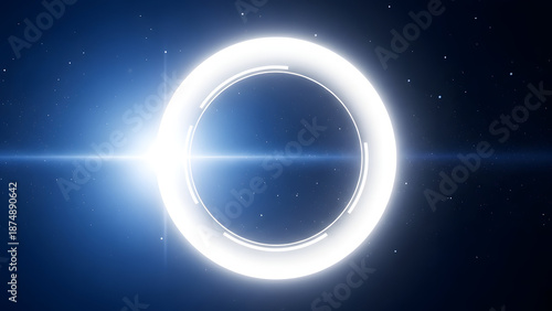 A bright glowing ring in space with a starburst effect