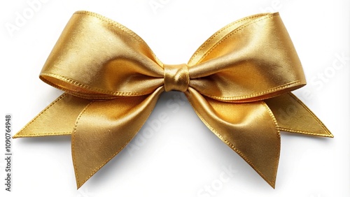 A bright gold satin bow on a white background, emphasizing its glossy texture and elegant design. It is ideal for decorating holidays, gifts, decorations or special events.