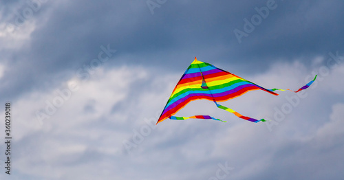 kite, sky, blue, fly, wind, parachute, fun, cloud, colourful, toy, cloud, leisure, summer, colours, air, yellow, sport, freedom, string, flag, high, flight, green, kite, rainbow, activity, tail, outdoors, symbol, play, action, hobby, joy, extreme, adventure, nature, background, paragliding