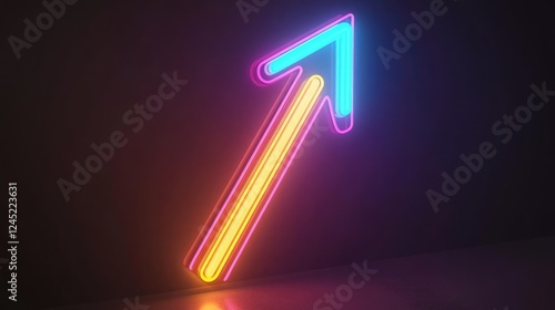A bright neon arrow pointing upwards, glowing in the dark, symbolizing progress, goals, and success.
