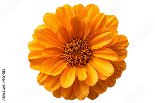 A bright orange marigold flower, isolated on a clean transparent background, PNG file.