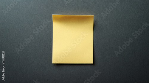 A bright yellow sticky note, reminiscent of a memo pad, is pinned to a wall or board in an office setting