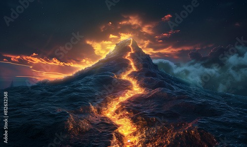 A brightly shining path leading to the top of the mountain means a defined business success strategy, where constant pursuit of the goal brings development and growth.
