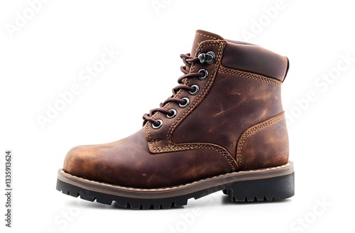 A Brown Leather Boot with Laces and a Rugged Sole
