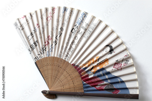 fan, korean, korea, white background, accessory, art, asian, background, beautiful, beauty, colours, cooling, craft, culture, decoration, design, elegance, fashion, folding, hand, isolated, object, open, oriental, pattern, retro, style, traditional
