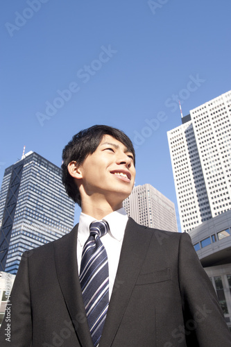 newcomer, business, businessman, people, man, youth, work, suit, hustle, japanese, communication, asian, building, business district, open air, sky, blue skies, city, japan, aim, smile, smile, success, achievement, enjoyment