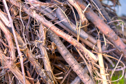 A bunch of different small firewood, dry branches and firewood