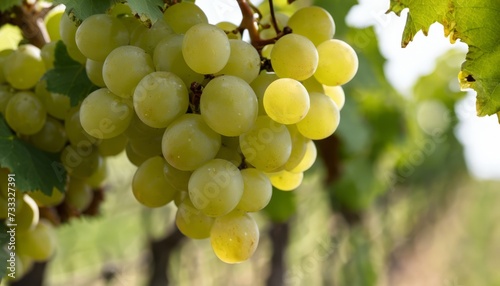 A bunch of green grapes hanging from a vine
