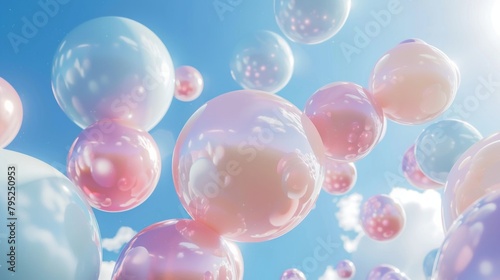 A Bunch of Sphere Objects in Pastel Colors Against Blue Sky. Abstract Background.