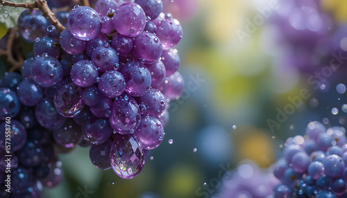 crystalline, macro, closeup, detail, detailed, high gloss, gloss, shiny, highlight, elegant, beauty, beautiful, pristine, flawless, honed, intricate, facet, sparkling, radiant, semitransparent, still life, fruit, artificial, decorative, object, bunch, flocked, berry, purple, lavandula, violet, indigo, waterdrop, dewy, fresh, indoor, studio shot, nobody, light, bright, unique, artistic, modern, contemporary