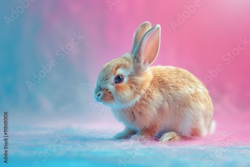 rabbit, rabbit, fluffy, brown, pink, blue, dreamy, background, portrait, cute, adorable, animal, pet, ear, eye, soft, fur, sweet, gentle, delicate, whimsical, magical, pastel, colours, light, airy, spring, easter, nature, wildlife, closeup, macro, sharpened, detail, texture, composition, art, digital artwork, illustration, design