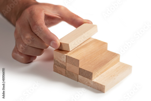 a business man build a blocks wood game