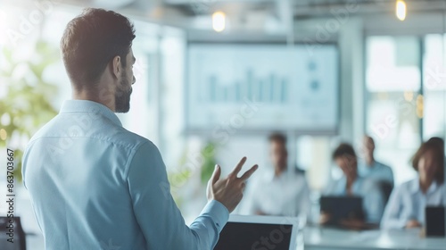 A business person presenting during a virtual meeting