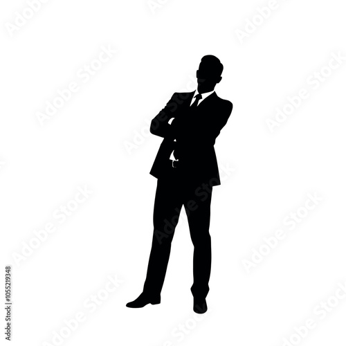A businessman silhouette standing with crossed arms, facing forward with a strong, confident stance