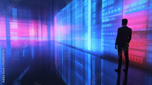 businessman, space, racked, futuristic, fill, colourful, neon, light, symbolize, impact, concept, aesthetic, ambience, industry, atmosphere, vision, artistry, system, creative, profile, leadership, network, abstract, future, structure, insight, urban, market, corporate, city, design, progress, investment, success, connect, datum, science, idea, dynamic