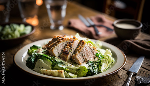a Caesar Salad with Romaine Lettuce, Grated Parmesan Cheese, and Grilled Chicken Generative AI