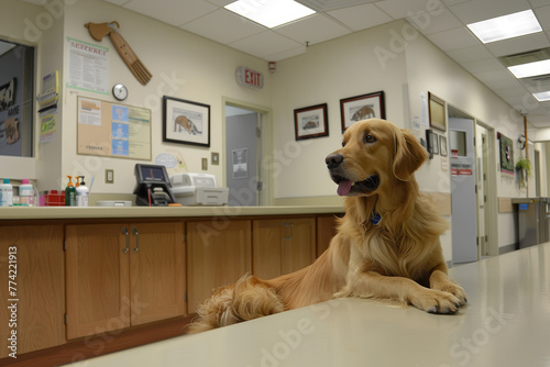 golden retriever, dog, veterinary, pet, waiting, attentive, calm, check-up, clinic, friendly, sitting, obedient, patient, canino, visit, exam, loyal, medicals, vet, service