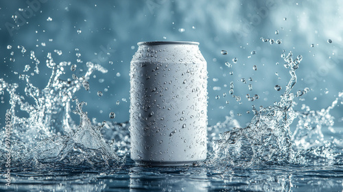 can, beverage, aluminium, water, splash, droplet, condensation, cool, refreshing, drink, liquid, fresh, white, blue, background, blur, surface, isolated, product, cardboard box, design, advertising, commercial, marketing