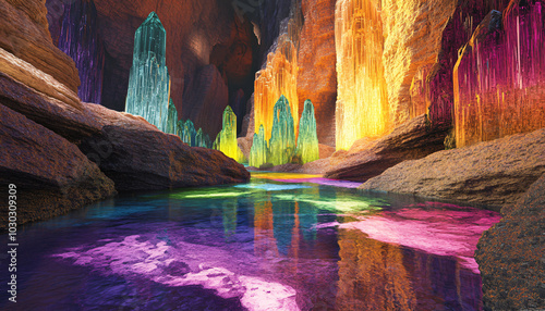 A canyon lined with crystals that emit musical tones when touched by the wind