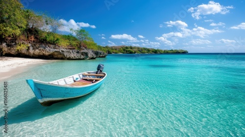 cove, boat, blue, water, vibrant, coastal, shallow, calmness, beach, serene, summer, nature, escape, adventure, joy, tour tourism, exploration, remote, peaceful, sunlight, ocean, landscape, leisure, idylli, sea, clarity, relaxation, sailing, harmony, stillness, crystal, journey, nautical, tropical, atmosphere, warmth, vacation, scenic, shoreline, cerulean, beauty, oceanic