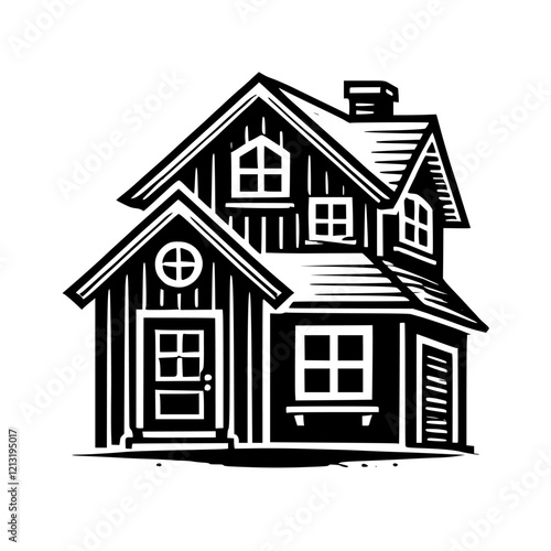 A captivating monochrome illustration of a modern house, showcasing clean lines and geometric shapes. Ideal for real estate, architecture, and home design projects.
