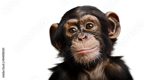 baby, chimpanzee, portrait, closeup, expression, smile, fur, texture, studio, lighting, eye, natural light, detail, hi-res, captivating, adorable, photo, photorealistic, soft, shadow, background, thoughtful, gaze, head shot, realistic, young, animal, cute, moment, camera, staring, baby animal, animal portrait, warm, delicate, intricate, expressive, lovable, memorable, real, high-coloured, sharpened, direct