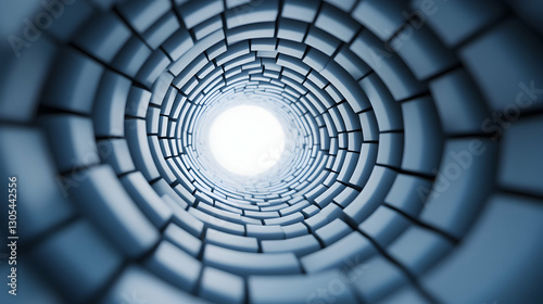 A captivating view of a circular tunnel composed of intricate geometric patterns leading towards a bright light at the end, symbolizing innovation and forward-thinking.
