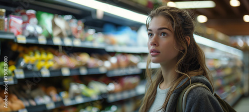 woman, supermarket, store, shopping, food, grocery, market, shopper, client, choosing, shop