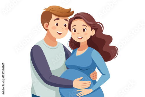 couple, pregnant, woman, man, baby, expecting, hugs, happy, smile, illustration, cartoon, parenthood, family, love, together, pregnancy, new life, future, joy, excitement, anticipation, hope, growth, birth, children, motherhood, fatherhood, support, care, tenderness, bonding, human relationships, life, dream, blessing, miracle, wonder